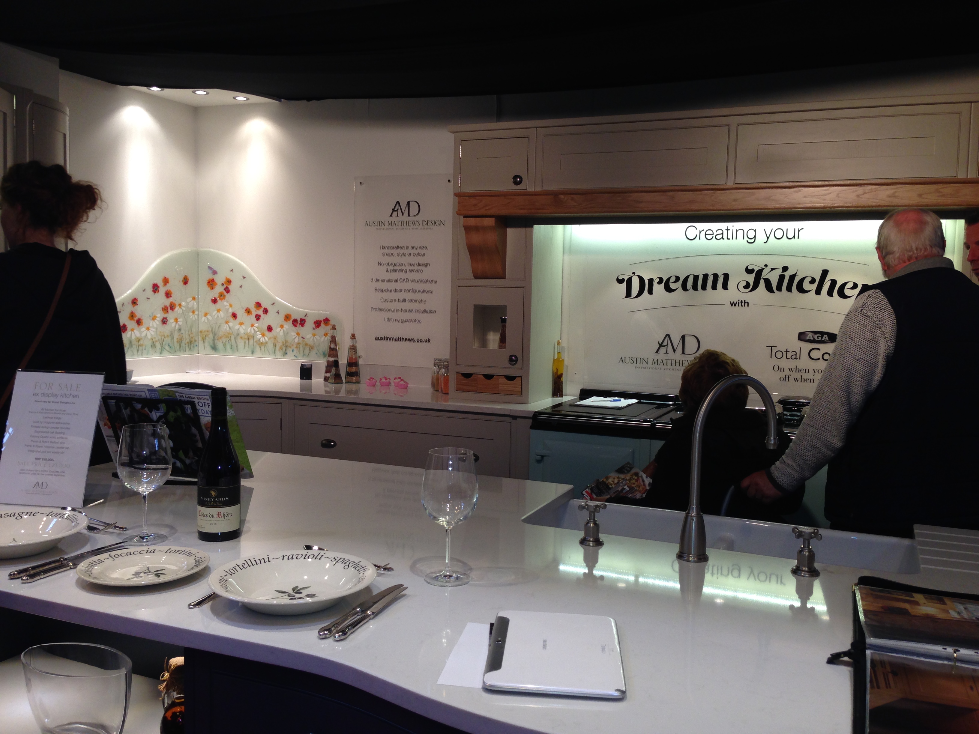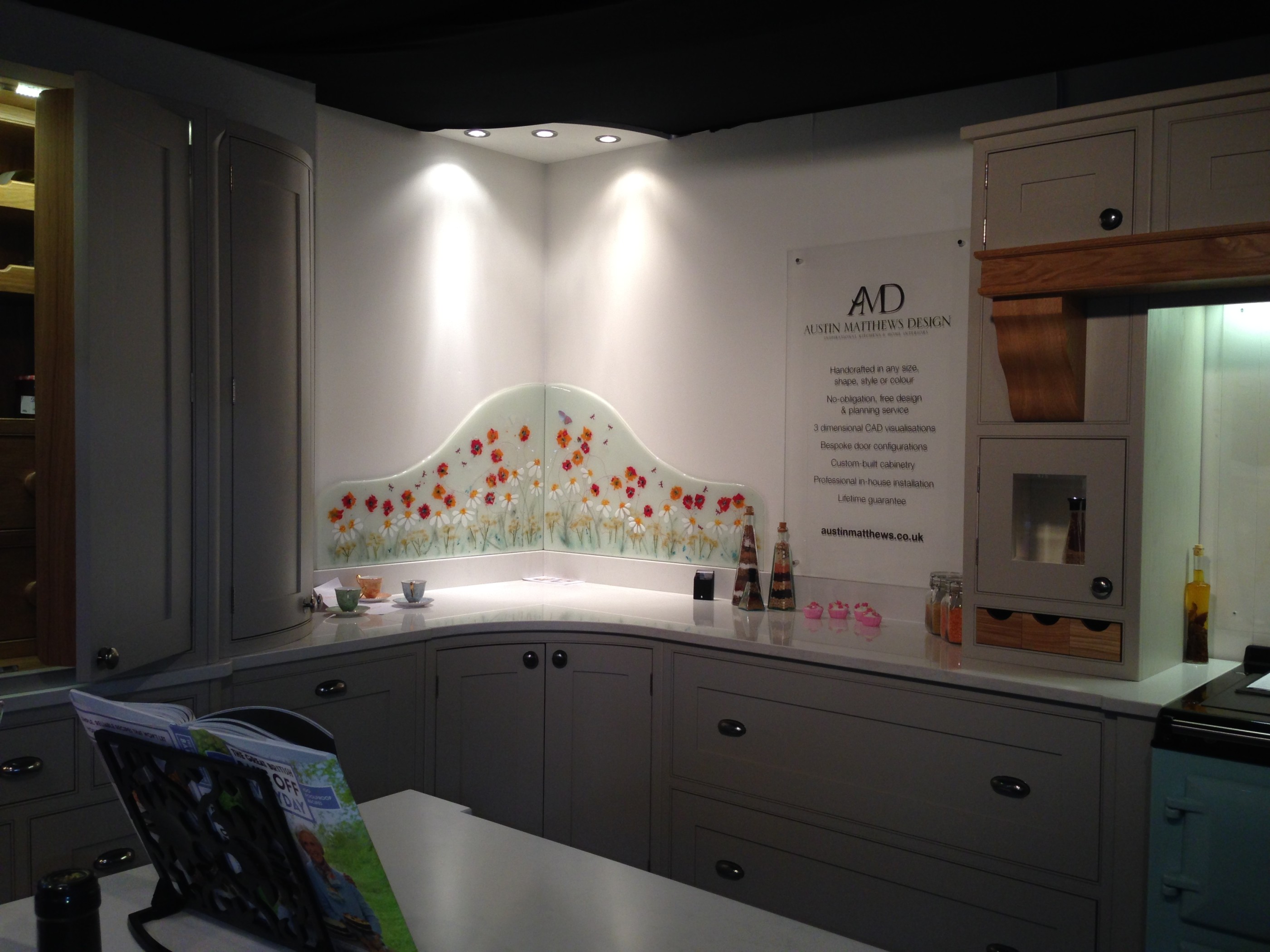 So a great time was had at Grand Designs, sharing a stand with Austin Matthew Design (a daily run kitchen studio near Stratford) and Aga. And our splash back display got a lot of positive attention!