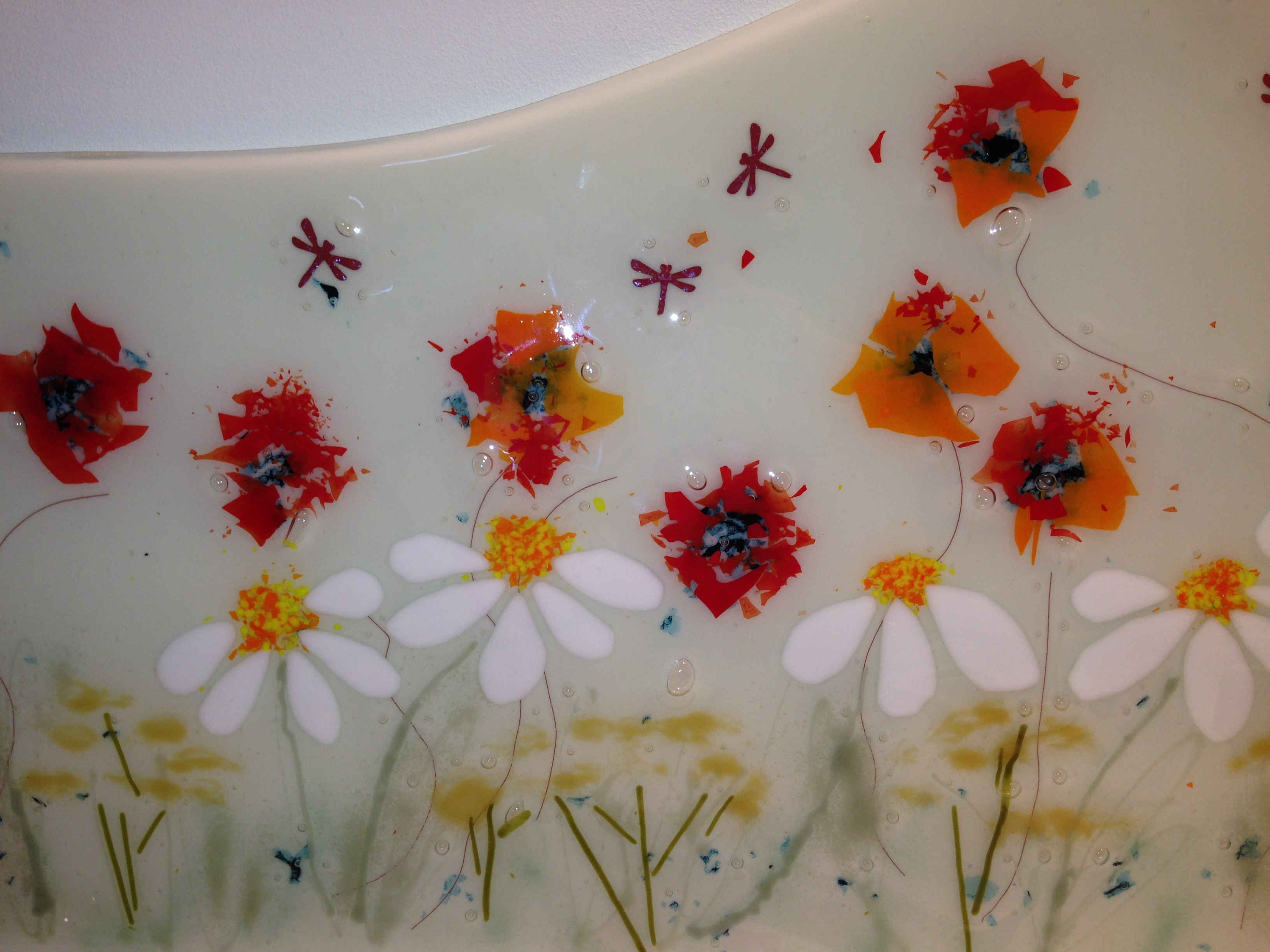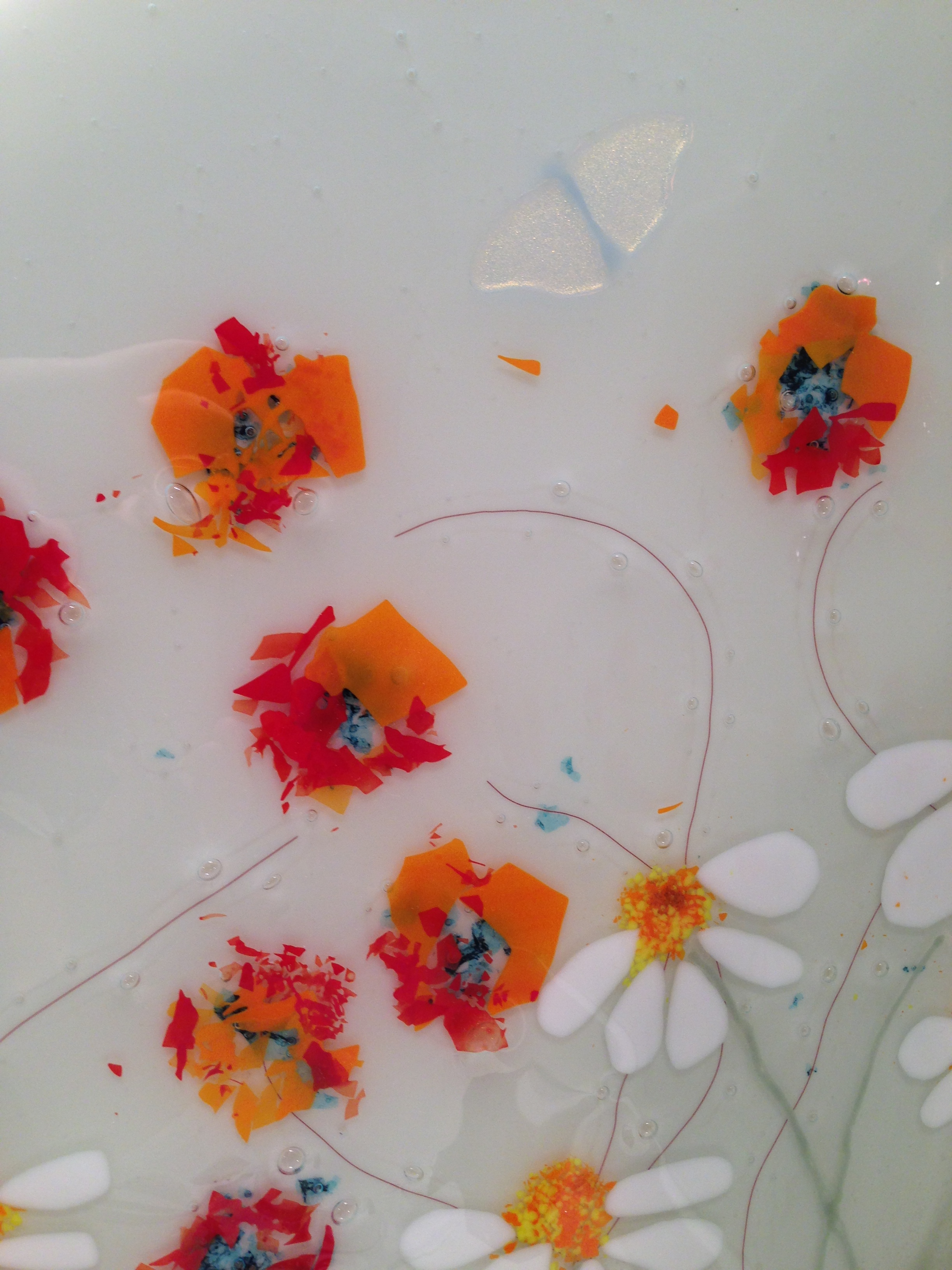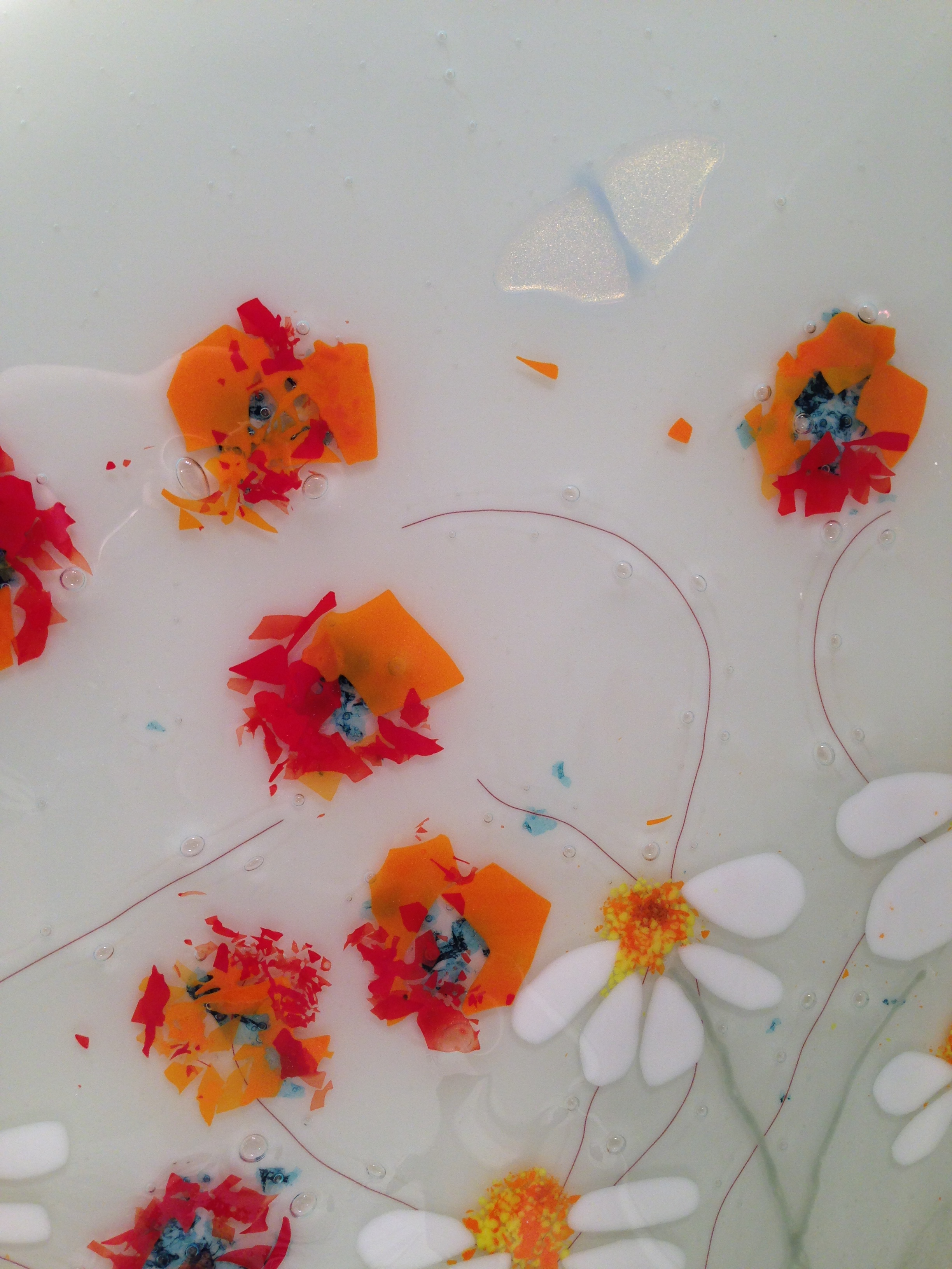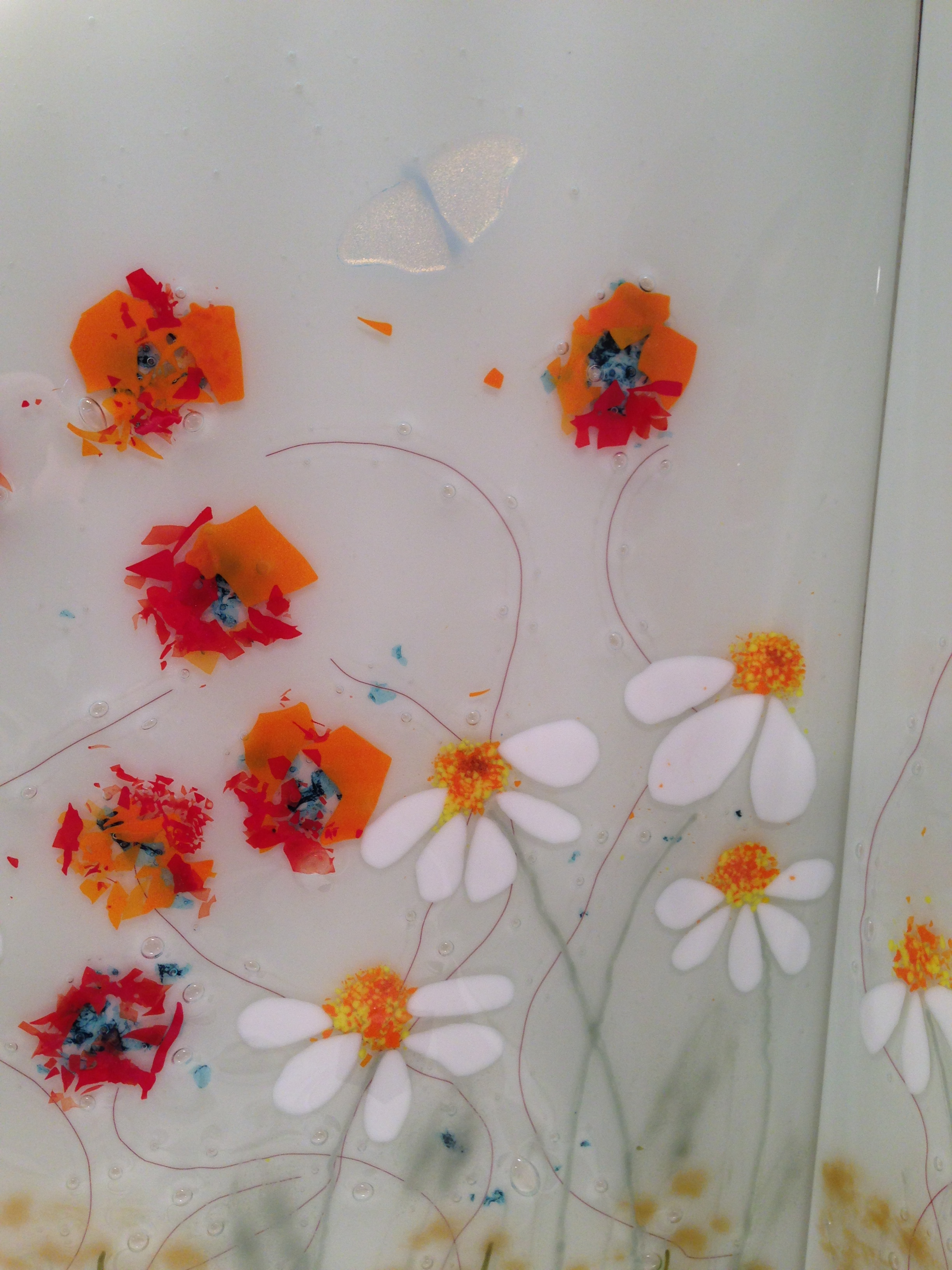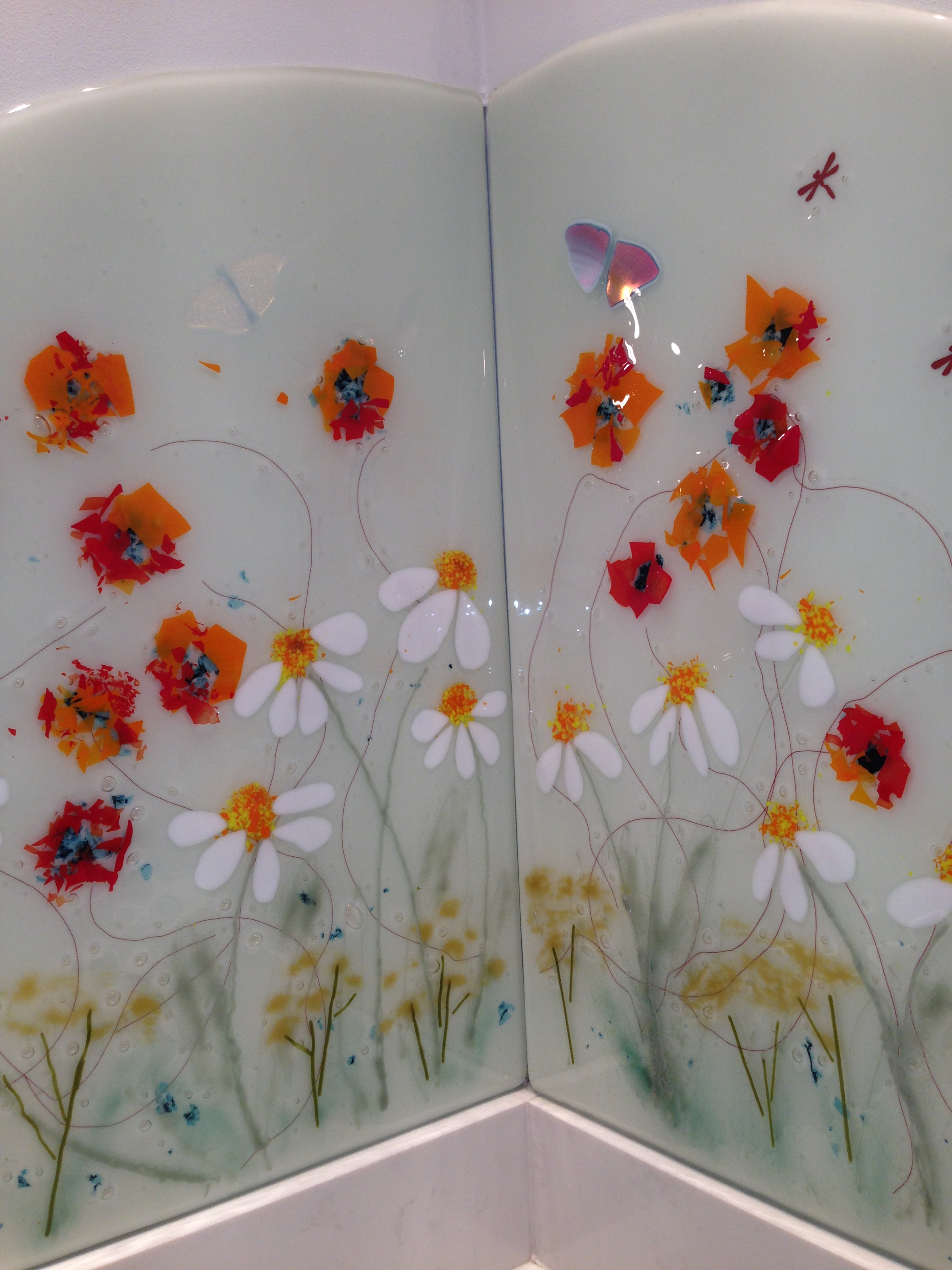 So this panel is made up of three fused pieces.. I have “jelly fused” the glass, (basically a slightly cooler firing in the kiln) which keeps a lot of the texture of the glass.. it’s one of those pieces you just want to keep stroking…